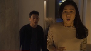 Joon Hyung comes into the bedroom asking for Hye Won’s video of Sun Jae playing, then directs her to fetch wine for him and his student before marching out. Hye Won closes a door behind her and shakes her head at the situation.
