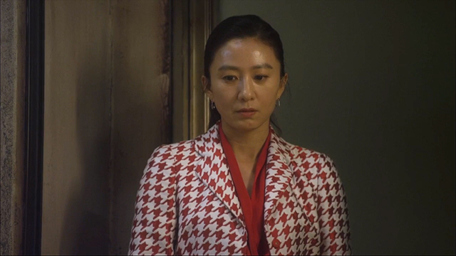 Upstairs, Sung Sook reads the message as she listens to Hye Won confirm that Young Woo can’t have SeoHan Apparel, because Sung Sook controls it. Sung Sook remarks that Ms. Baek, the fortune teller’s fund is lucrative, then asks Hye Won to look into doing more business under the foundation’s name. Hye Won politely refuses, saying she’s not daring enough to try. Sung Sook tells her to open the drawer of the desk, saying she got her a present. It’s a spectacular diamond necklace and earring set, and Sung Sook encourages her to try it on. Hye Won refuses, saying her outfit doesn’t match, and Sung Sook looks exasperated, but says nothing.