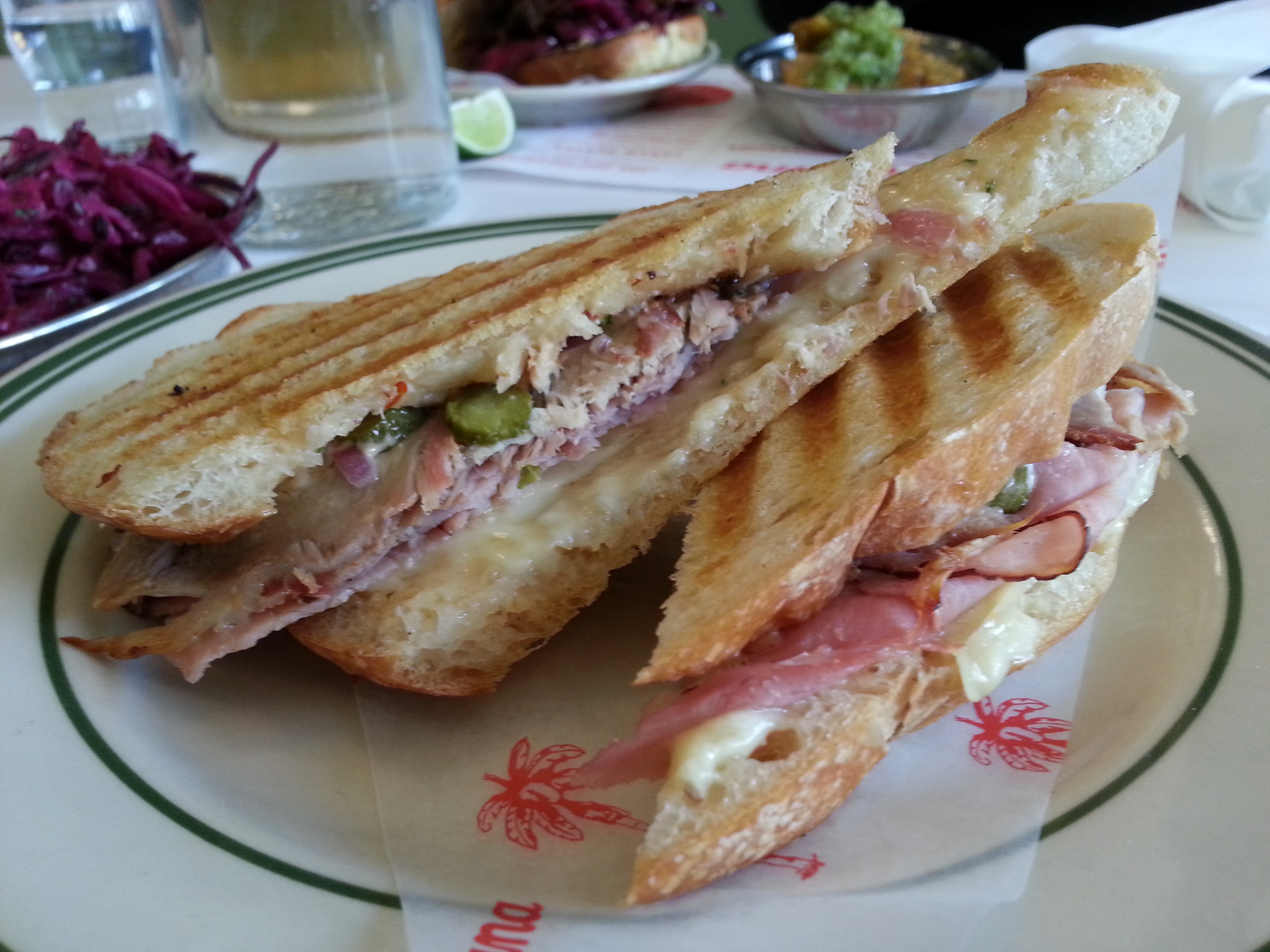 Pressed Cubana Sandwich: pork, ham and gruyere cheese with some pickled peppers (I think) thrown in for good measure placed in between two grill pressed slices of bread. I thought it would all be too much, but it wasn’t. The crunch of the bread transitioned nicely to the soft melted cheese, and the cheese smothered any excessive saltiness from the meat. Also ordered a side of Red Cabbage Slaw, which was fresh, but nothing special.