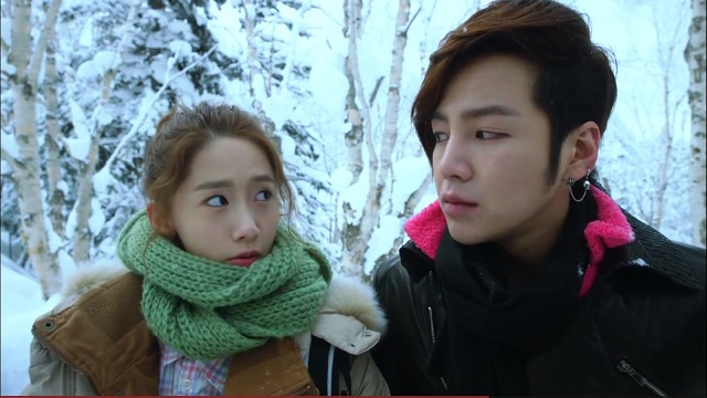 Present day, In Ha’s son, Seo Joon is a dead ringer for his father, and Jung Ha Na is the spitting image of her mother, Yoon Hee. Unfortunately, it is 2012, and chivalry is dead. When Joon comes into possession of Ha Na’s cell phone accidentally, he ignores her pleas for her phone then holds her phone hostage in order to enlist her help. After mocking Ha Na’s suggestion that he is under-dressed for a winter night in a forest, Joon forces her to give up her pink fleece jacket to him.