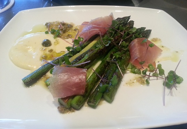 We started with the appetizer specials of the day. The first was asparagus with speck, Parmesan Zabaglione, and preserved lemon vinaigrette. The second was Quaglia: pan roasted quail with Agrodolce grapefruit reduction, farro, chiogga beets, and baby mustard greens. Both the asparagus and quail were perfectly cooked, and the citrus aspects of both were subtle enough to simply make the dishes refreshing.