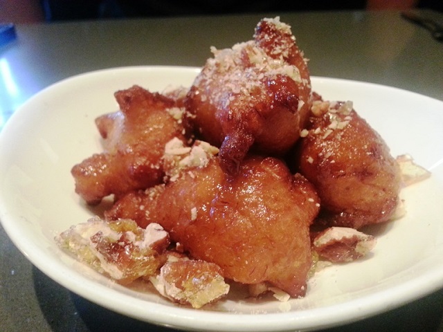 Though we were stuffed, we decided to have dessert: Zeppole di Mele – banana fritters drenched in wild flower honey and sprinkled with candied pecans. I am not usually a fan of banana desserts as I find banana overtakes everything else. In this case, the banana flavour was subtle, just lending its aroma to the fritters. The honey was equally light. My significant other complained that the fritters were too doughy, but I liked the density.