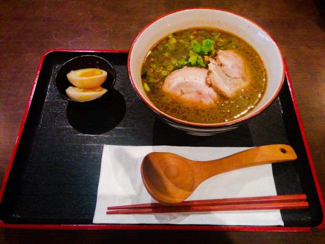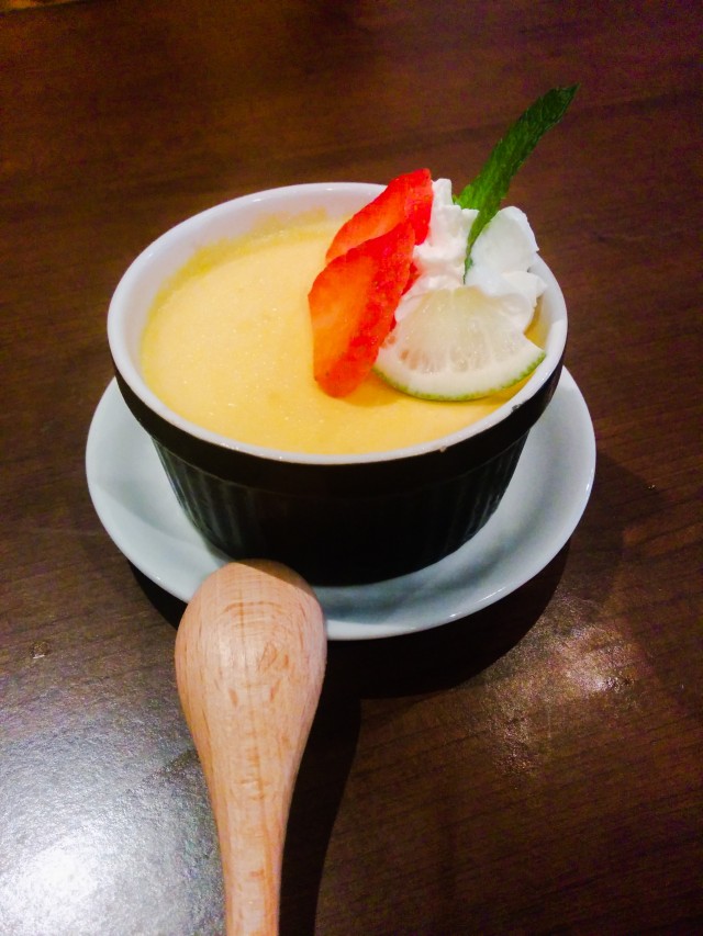 Ramen Isshin doesn’t have the sexiest decor, looking like an scaled up cafeteria, but pulls out all the stops with flavour. I enjoyed my Isshin Red Miso Ramen, which combined sweet red miso with porky goodness, but my significant other didn’t even come up for air while inhaling his Spicy Black Tan Tan Noodle. His review: the spiciness doesn’t come from the heat, but from the combination of strong flavours; a great dish. We both enjoyed the chewiness of the noodles, and they held up well to my (slightly) slower pace of eating. He was hungry enough to order takoyaki on the side and mango pudding for dessert, and thoroughly enjoyed both. His only quibble was that Ramen Isshin is not yet licensed, and he couldn’t have a beer to wash it all down. Update: as per the comment below, Ramen Isshin is now licensed!