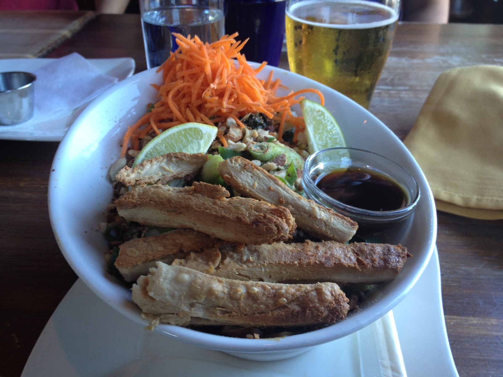 Based on positive online reviews, two of my friends ordered the Buddha Bowl featuring a green coconut curry with select vegetables, basil, toasted almonds, cilantro and lime on quinoa. They seemed pleased with the dish, but I thought the curry was too watery, making it more of a soup than a sauce.
