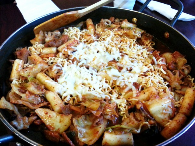 We ordered two Joons Specials in large pans: JjooSam BulGoGi and DakGalBee. We added extras to each dish such as rice cake, mozzarella cheese, and noodle.