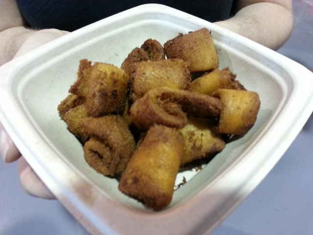 Nasi Kroket ★ ★ ★ Too full for a Patatje Oorlog (mayo, satay sauce, raw onions over fries), we opted to try out a Nasi Kroket, basically fried rice in a croquette. This nutritious concoction tasted reasonably fresh, but was a bit on the flavourless side (for extra authenticity). Luckily it was saved by the tasty peanut satay sauce on the side. This is the only place I’ve seen selling krokets in Toronto, so if you have a craving for deep-friend Dutch classics, hurry to the CNE. – Dutch Frites
