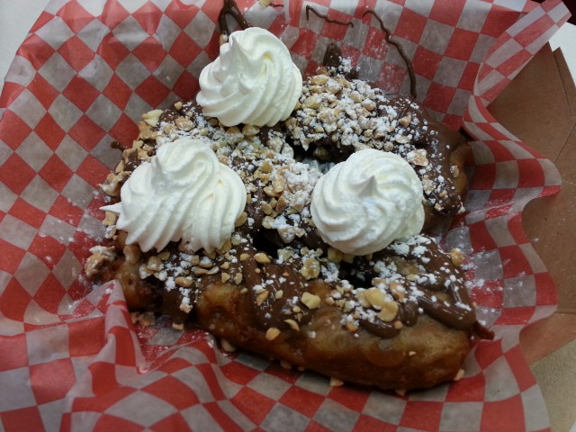 The Food Building of the Canadian National Exhibition has always been the place for attendees to try out exotic foods, and to be as naughty as possible. For vendors, it has become an arms race to see who can create the most disturbing concoction for diners to clog their arteries with. Vendors have become more trendy in recent years, following the formula of putting a new spin on classic comfort food.
