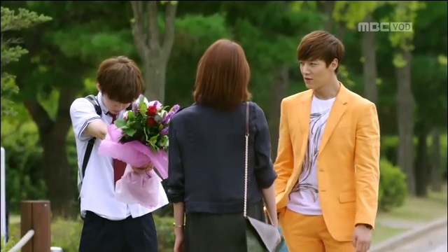 Back at the wedding, Secretary Tak (Choi Dae Chul) asks the guests to go home, only to be interrupted by the entrance of Lee Gun (Jang Hyuk) and Kim Mi Young (Jang Na Ra). The wedding is finally about to get underway, when Mi Young’s mom comes flying in as well. With everyone in place, the ceremony starts. Gun and Mi Young recite their vows, exchange rings, and the whole room explodes into hearts and flowers, as they kiss and Secretary Tak weeps.