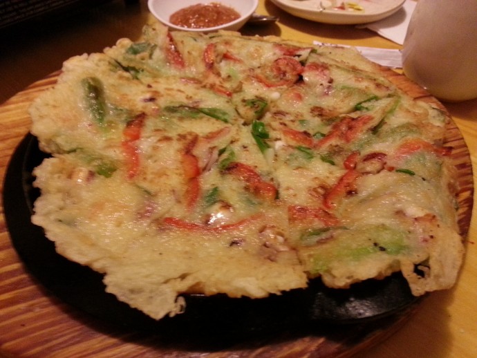The seafood pancake was middling in that it looked like a mess and tasted oily, but actually tasted considerably better than it looked. The seafood embedded in the pancake appeared to be fresh, and not sapped of flavour from freezing.