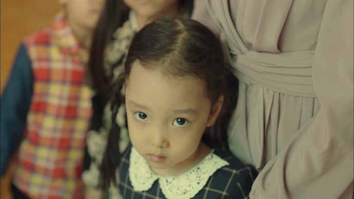 After a long day of work, Ji Young puts So Mi to sleep and does house chores. When her husband finally comes home, they laugh over So Mi’s unflattering portrait of them, in which her father is sleeping and her mother is faceless. The next morning, Ji Young is about to leave So Mi at the daycare when she ends her business call to look back. Ji Young realizes how often her daughter has seen nothing more than the back of her head and tearfully returns to hug So Mi, asking her to draw another picture of her.