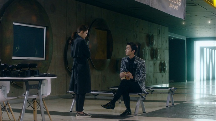 Back on the stage, Woo Jin is still asking about everyone’s connection to L Company. Do Young scoffs at Woo Jin then echoes Woo Jin’s mother’s last words before laughing at Woo Jin’s confusion. Woo Jin stops him from walking away, and asks if Do Young knows him. They stare intently into each other’s eyes.