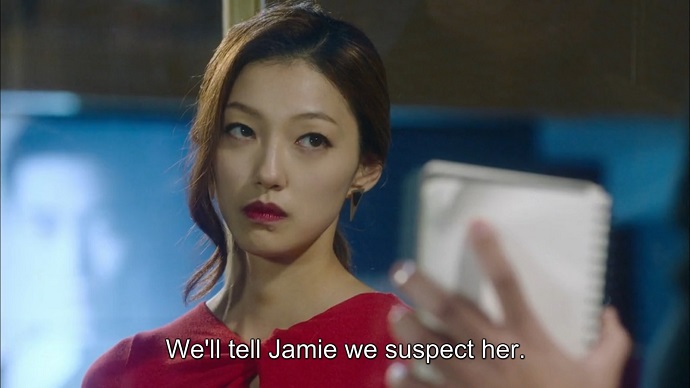 Woo Jin approaches Jamie first, telling her through a written message that she is a suspect. She writes her denial of the accusation on the floor as directed by Woo Jin, giving the appearance of opening her safe for Woo Jin to the lawyer. Thus, Woo Jin is able to bluff to the lawyer that he knows that the lawyer holds the national funds, then threaten him with elimination. Sure enough, the lawyer starts begging for mercy. Woo Jin coldly walks away, and the lawyer is escorted out. Do Young rubs his forehead with a look of mild frustration.