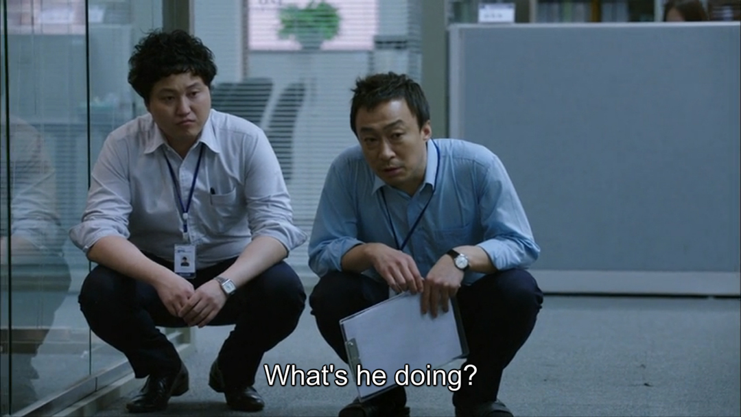 The next morning, Sang Sik presents the proposal to acting department head, Mr. Ma, who rejects it outright. He’s overruled by the executive director, and Sang Sik is given a week to present the proposal for evaluation before the entire executive body of the company.