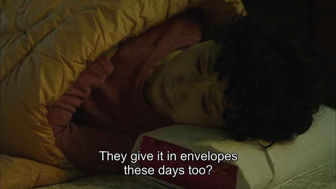 When Geu Rae gets back to the office, Sang Sik gives him a New Year’s bonus. That night, he gives the money to his mother at home.
