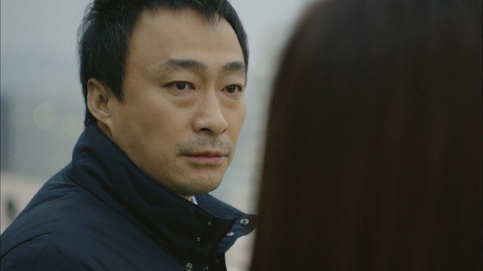 In the lobby of the building, Sang Sik runs into the executive director, who asks about Geu Rae. He points out that Sang Sik’s actions in the case of Mr. Park were reasonable, but that he would have liked to have been informed ahead of time. Sang Sik bows as the executive director leaves.