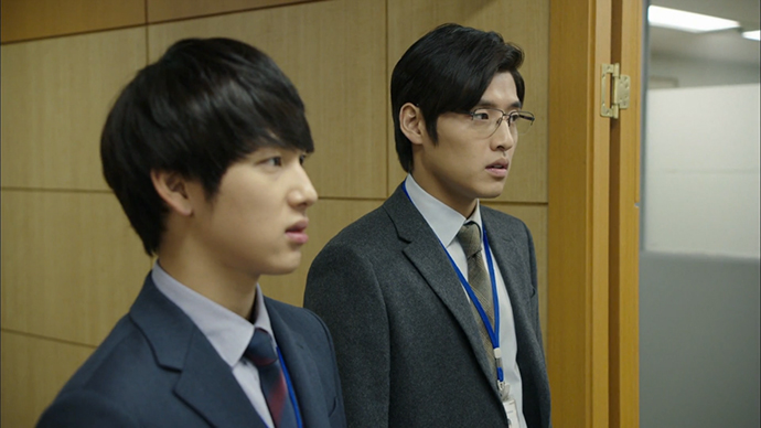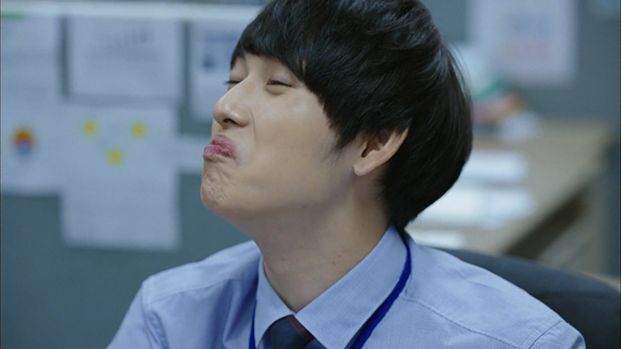 Suk Yool, meanwhile, discovers that his efforts to embarrass his boss have rebounded back at him. At work the next day, on the elevator with the other newbies, he overhears a conversation about his intranet post, basically characterizing him as a useless newbie. Humiliated, he hides behind Geu Rae for the rest of the elevator ride.