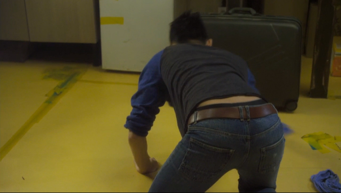 Sun Jae is shocked to see Hye Won waiting outside his place. When they go inside, he asks her to wait at the door while he wipes down the floor of the apartment. Hye Won’s face as she watches Sun Jae clean is priceless: a study in confused lust.