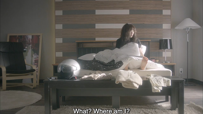 The clueless Doo Soo and his fiancée go up to his apartment together, regardless, as a heartbroken Hong Do watches from behind her helmet. Hong Do stands in front of the window of Doo Soo’s apartment as it starts raining, and promises herself never to return. Her lonely tears are interrupted by Yi Seok, who is calling to demand that she come over to stop him from drinking.