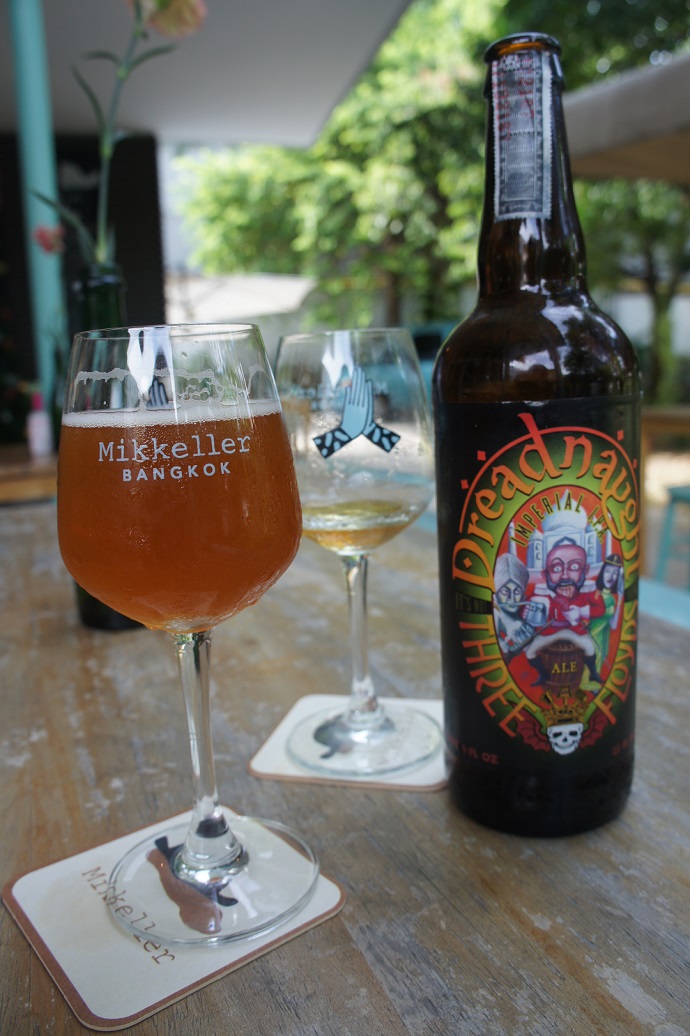 The Dreadnaught Imperial Pale Ale is produced by Three Floyds Brewing Co. in Indiana, United States. However, it is so rare that we had to go to Bangkok to find it. I am not a fan of IPAs, but this one had a citrus flavour, and a crisp finish that I could appreciate.