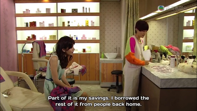 During her facial, Apple digs for the source of the funds Fung Nei used to open her shop. Fung Nei nervously claims that it all came from savings, and loans from family. Apple is called away by Valentino, the flirty cop whose place was taken by Tai Shu in the undercover operation. He confirms Apple’s suspicions that Fung Nei has no record of savings nor a loan.