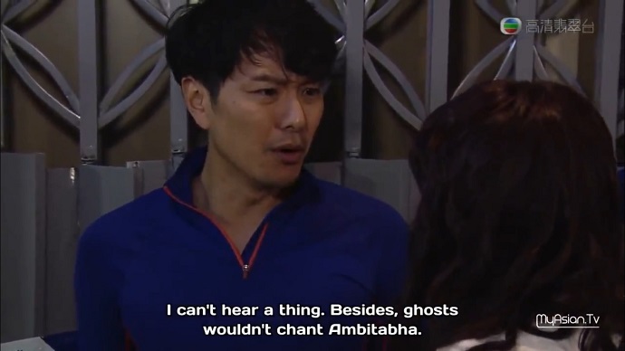 Coming home, Apple hears the creepy ring tone of Lin Heung’s phone emanating from Wan’s apartment. Apple thinks she hears ghosts, Tai Shu acts skeptical, and Maruko jumps out of the bedroom with a frightening amount of Apple’s makeup on.