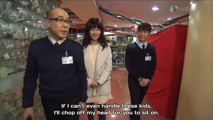 Unfortunately, Apple proved herself to be incompetent when it really counted. In the middle of arresting a criminal, the very thing she was trained to do, she slips and falls, and begs for mercy after being blinded by flour, of all things. They couldn’t have made it lemon juice or raw onions or even durian? Maybe this is the HK-drama version of the gauntlet of humiliation that K-drama heroines must face. One can only hope that Apple can finally get some respect and dignity after the first quarter of the series.