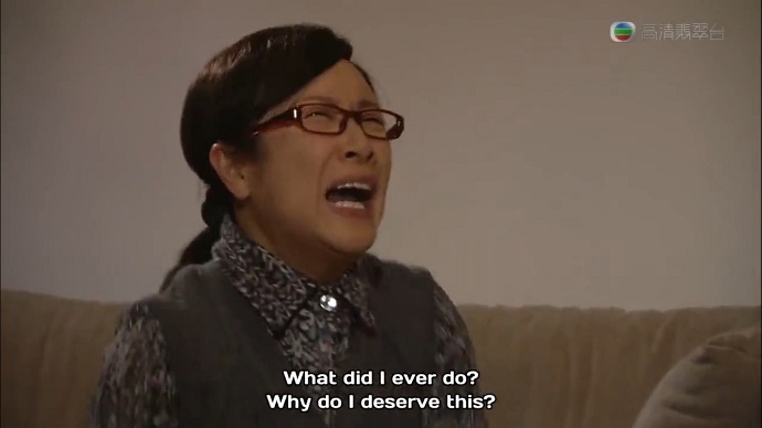 Okay, “Madam Cutie on Duty”, why are you focusing on things that don’t matter? There is no intrigue regarding Dan Dan’s husband’s possible philandering. It is so obvious that he is not, and there will be some innocent explanation for his sneaking around with a white woman. The entire side story of Fung Nei’s mother-in-law being a former Chinese opera singer, and Apple’s mother in search of her, feels shoehorned in. There was no reference to Chinese opera prior to this episode. Frankly, it seems like a distraction from the more interesting issue of an older woman who feels disconnected from her family.