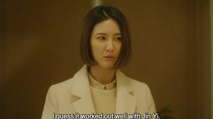 Their battle is cut short by the arrival of Attorney Kim, who makes an effort to be nice to Jin Yi to impress Soo Kyung. Soo Kyung is too miserable to even notice.