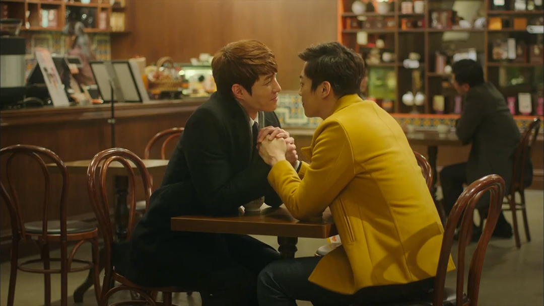 Soo Kyung’s boss, Attorney Kim is interrupted by Dae Young while buying chocolates for Soo Kyung. Dae Young surmises that Attorney Kim has a crush on Soo Kyung, and Attorney Kim tells him the whole story. Attorney Kim is so moved by Dae Young’s encouragement, and Dae Young is so moved by Attorney Kim’s long-time love that they end up clasping each other’s hands and looking into each other’s eyes.