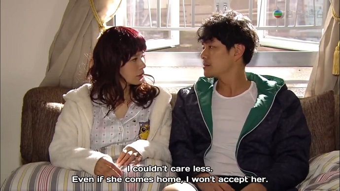 Apple’s mother and Tai Shu do all the talking, mom ends up storming out without her daughter. It turns out to be a good thing that the sham marriage was maintained, because they find an audience of their neighbours outside their door. They all plead with Apple’s mother to accept her daughter’s marriage.