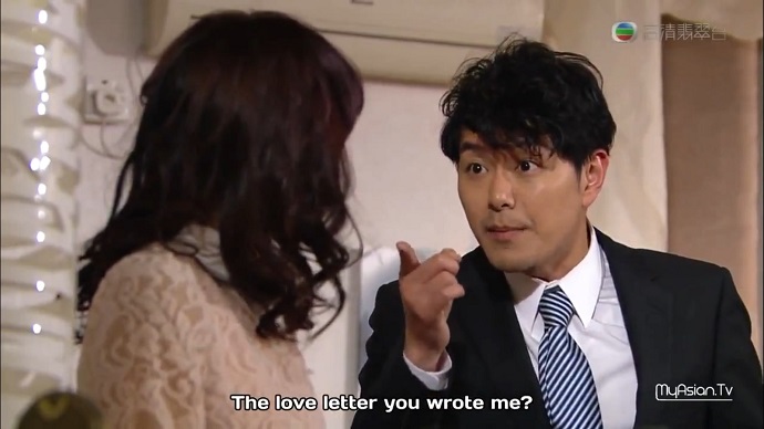 Before dinner, Apple shows Tai Shu her bedroom, and a note falls out of Apple’s box of mementos. When Tai Shu expresses curiosity about the note, Apple’s father identifies it as the love letter Apple wrote to Tai Shu in high school. Apple quickly silences her father as Tai Shu looks perplexed.