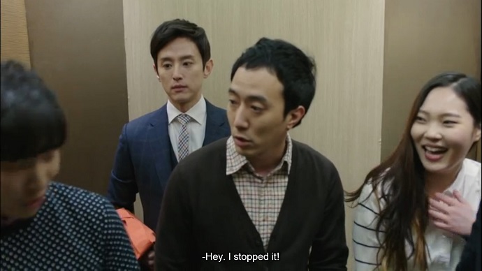 Soo Ji is still coming across as a complete nut. She instantly descends into a rage where Dae Young is concerned, and is unbelievably dense when it comes to social interaction. Who rejects the chance to go out for a movie, with either Sang Woo or Dae Young? I am not sure if I find her annoying or amusing. Fortunately, the object of her affections, Sang Woo is just as incompetent. Kudos to Kwon Yool for conveying such palpable unease when Sang Woo is faced with a happy group of adults socializing in the elevator.
