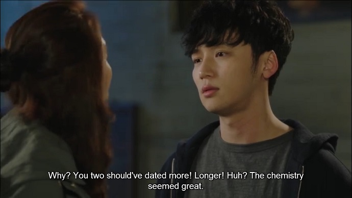 The entire dynamic between Myeong Soo and Soo Jin has been highly watchable, because Song Ji Hyo and Byun Yo Han have done such a good job of conveying how messy their characters’ feelings and relationship are, in a realistic way. When Soo Jin repeatedly questions what makes Myeong Soo attractive to so many women, I can’t tell if she is questioning her own attraction or if she is just jealous of the attention he receives. Similarly, it is unclear just how oblivious Myeong Soo is to Soo Jin’s feelings as well as his own.