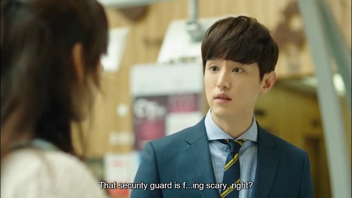 The only good thing about these confounding developments is that they made Sang Woo look amazing. He saved Soo Ji from the security guard with authority and minimal fuss, then put her at ease by swearing, and making it clear that he finds the drama that follows her delightful. Then, Sang Woo reschedules the work meeting in order to enjoy lunch out in the open with Soo Ji, forces spoiled food down his throat in order to show his appreciation for her efforts, then mimes doing exactly that to Soo Ji during the meeting. It is too bad that Soo Ji is so uncomfortable around Sang Woo, because that will be the only reason for their breakup.