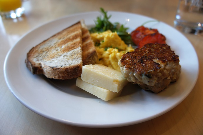 I ordered the Farmer’s Plate: soft scrambled eggs, farmhouse Bobolink cheddar, house rosemary sausage, herb roasted tomatoes, sourdough bread toast. I belatedly realized that we had ordered the same thing in New York. This time around, it was good, but failed to impress. I should have stuck with their pancakes.