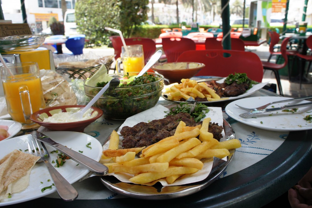 The internet told us that Al Dhiyafa Street used to be a hot spot for restaurants, but is still a recommended place for local dining. We walked down the street at middy so the heat prompted us to make a quick decision. We decided to try Al Mallah Dhiyafah based on a reputation of it serving cheap and good Lebanese food.