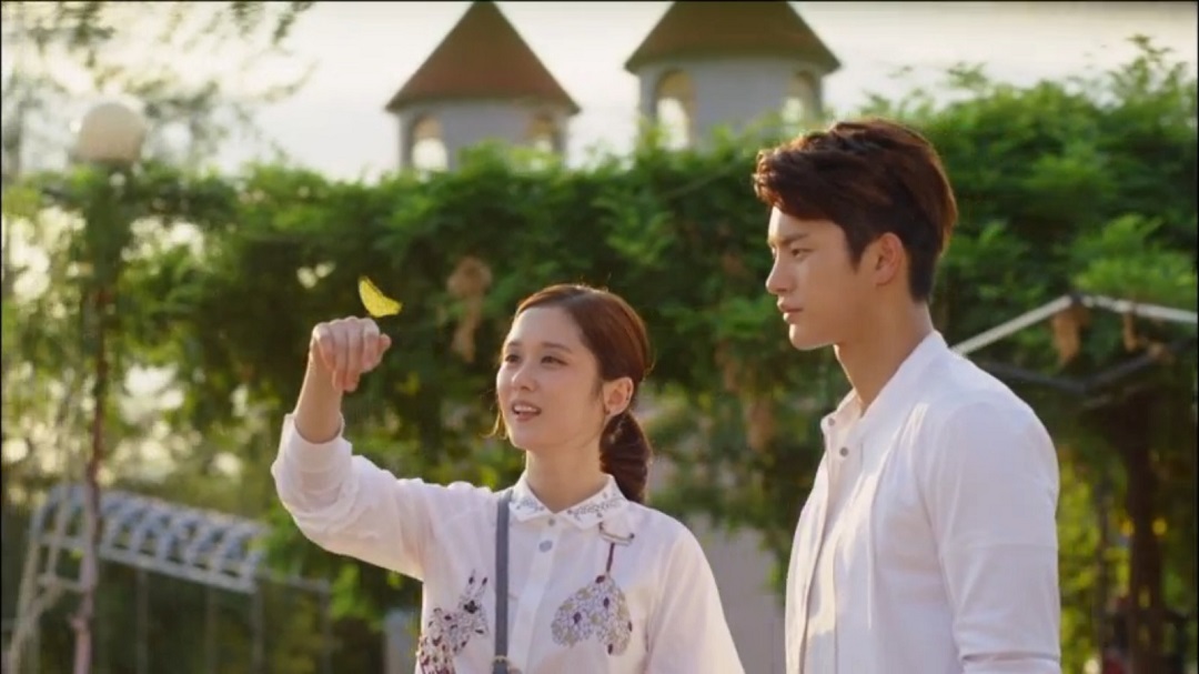 The amusement park turns out be one that Ji Ahn used to go to with her father, but has since shut down. She drags Hyun around the place, and forces him to take pictures, but his torture is interrupted when he spots someone following them. When a butterfly floats by, Ji Ahn stops to look, and Hyun caresses her on the head while she’s distracted. She’s obviously touched, as he empathizes with her about the tough times she must have had growing up.