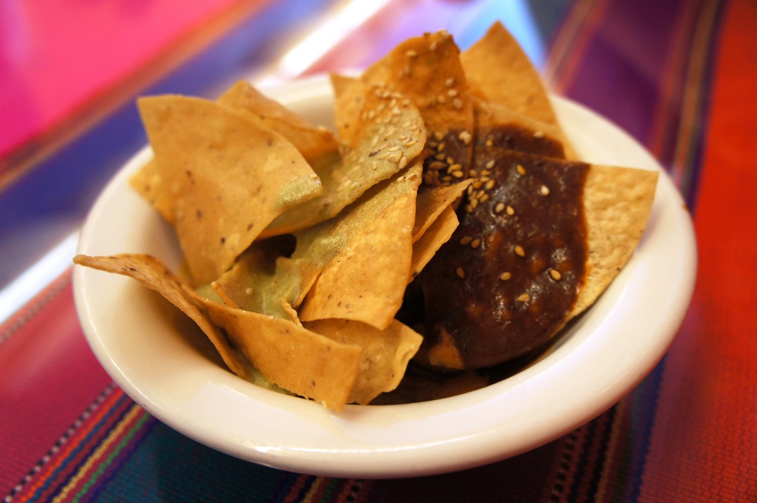 Between the two of us, we split what seemed like a huge amount of agua fresca, chia lemonade and horchata. All of them were delicious and super fresh, and went down pretty fast. Luckily, we had a side of complimentary tortilla chips with three different kinds of mole to slow us down.