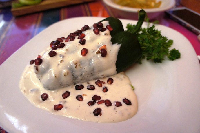 Next to arrive was the Chile En Nogada, a dish that I would never have thought to order without some prompting from the waitress, but really enjoyed. The pecan cream sauce with pomegranate seeds was delicious over the meat stuffed pepper, though maybe a little too sweet for me to eat on a regular basis. Good thing I don’t live in LA.