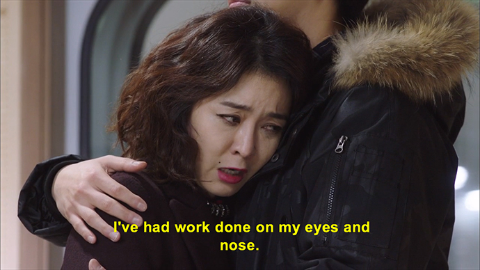 Instead, it’s Yi Seul and Haeng Ah that end up talking. It starts out innocuous enough, but Yi Seul informs Haeng Ah that she’s looking into treatment options for Sun Young, so that Ri Hwan can have more time with Sun Young. Haeng Ah expresses her thanks, but Yi Seul isn’t having it, and wonders why Haeng Ah is forcing Ri Hwan to choose between her and his mother. Haeng Ah can hardly get a word in edgewise, as Yi Seul offers to give her everything she has if she leaves Ri Hwan alone. Embarrassed by her own words, Yi Seul tries to leave, but Haeng Ah chases her and begs her to help Sun Young. Haeng Ah can’t promise to disappear, but she tells Yi Seul that she’s trying to break things off with Ri Hwan. Yi Seul asks her to forget everything she just said, and leaves.