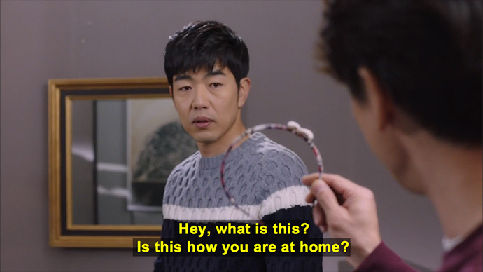 Frustrated at being unable to touch her outside, Ri Hwan tricks Haeng Ah into coming inside by pretending his flatmate/co-worker Ji Hoon (Lee Seung Joon) is home. Once he gets Haeng Ah inside and it becomes obvious that Ji Hoon isn’t home, Ri Hwan can’t stop flirting with her. With perfect timing, Ji Hoon arrives home, though, after telling them that he’ll be attending the party, he leaves them alone.