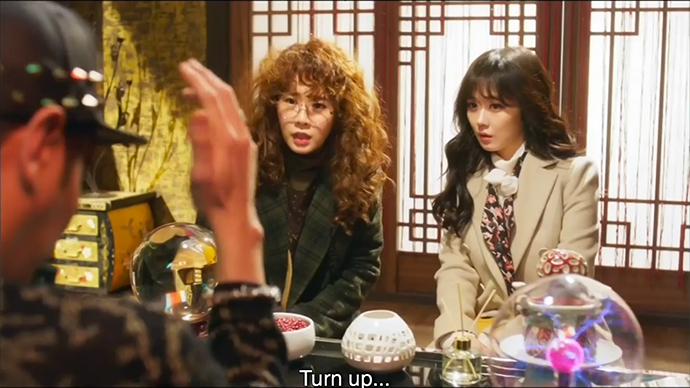 The place turns out to be a hip hop fortune teller (I’m sure this is a cameo, but I can’t identify the guy), who asks for $50,000 to find her a husband. Before Dong Mi has a chance to make up her mind, a screaming woman comes running in to the office, and accuses the fortune teller of setting her up with a stalker. Dong Mi decides to make herself over instead, with mixed results.