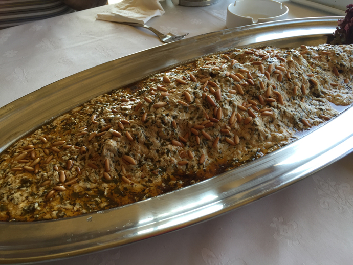 Most Lebanese foods lend themselves well to being photographed; samke harra is not one of them. I can assure that there is a whole grouper underneath the copious amounts of spicy tahini sauce, and it’s delicious.