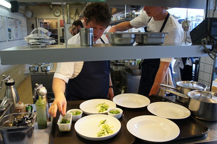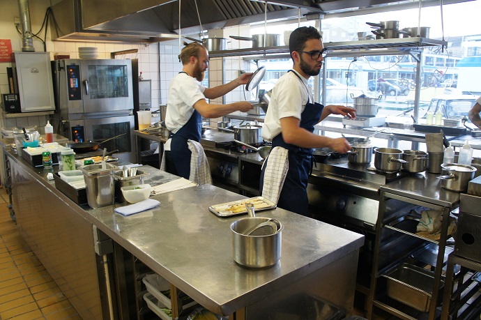 Located in the former meatpacking district of Copenhagen, Kodbyens Fiskebar prides itself in serving fresh seafood. So confident are they in their practices that they invite diners on tours of their kitchen, which we excitedly took part in.