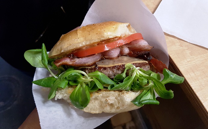 Kumpel & Keule offered a dry aged beef burger that was very tasty. The fresh vegetables and bun, parts of the burger that are frequently neglected, completed it.