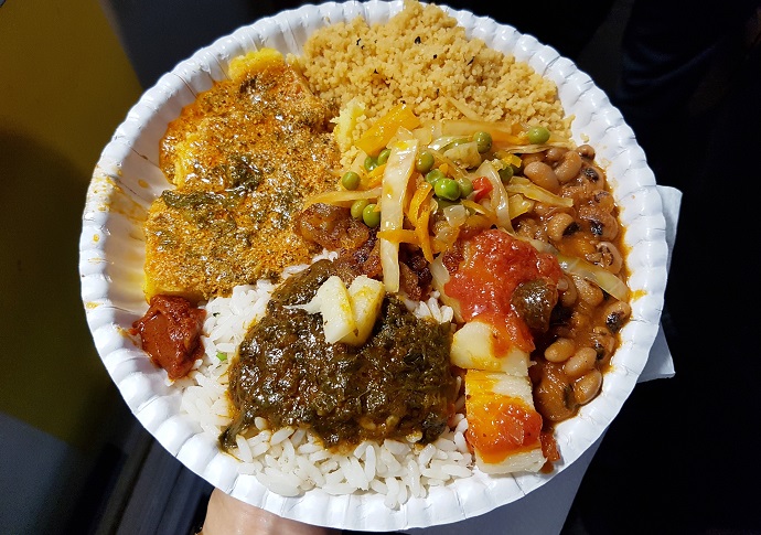 We decided to avoid any stall featuring cuisine that could easily be found at home like Korean and Mexican. For this reason, the Nigerian soul food caught our eye. I am sorry to say that I cannot remember the vendor’s name. Her food lacked a professional polish, but it was definitely delicious.