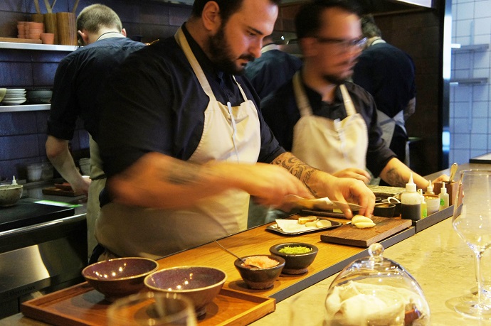 We sat at the counter, facing the kitchen, which meant we had a dinner and a show. This proved to be way better than sitting at a traditional table.