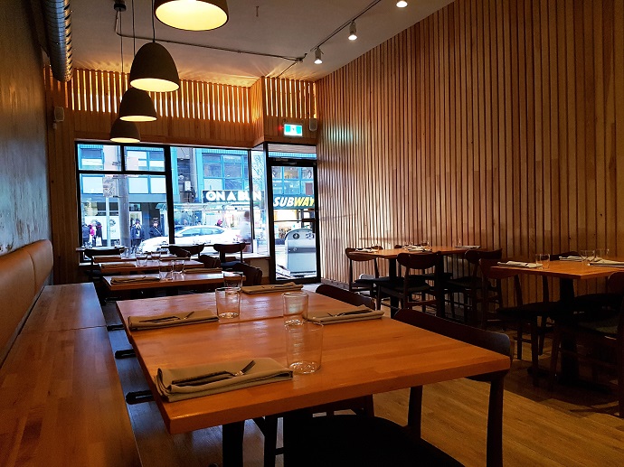 The décor, though minimalist in design, is warm thanks to the abundance of wood. It was a welcoming environment when we visited on a cold and rainy evening.