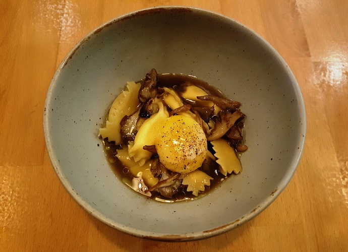 Our second appetizer was ricotta stuffed pasta, with yolk, kelp oil, and mushroom broth. I found the pasta slightly undercooked, but the ricotta stuffing was nuanced and the mushroom broth brought everything together.