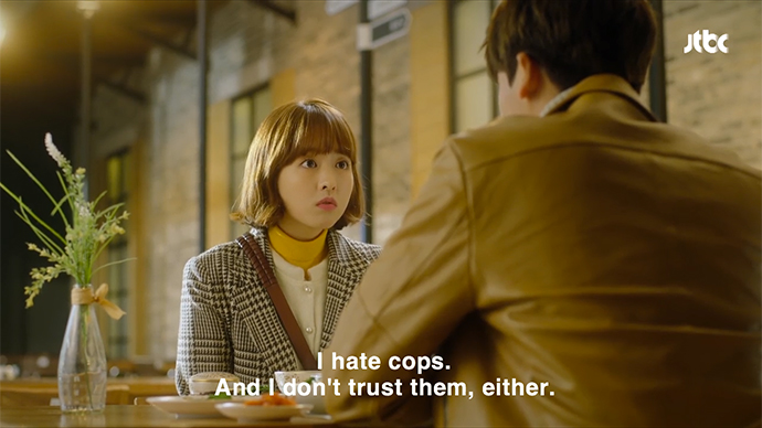 Jin Joo: I can’t say I thought much of serious cop, Gook Doo (Ji Soo). I mean, the hearts in her eyes when she looks at him are pretty cute, but it’s like she’s throwing herself at a blank wall. I don’t know if it’s a failure on the actor’s part, or if it’s just how the character is written.